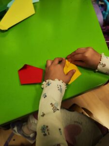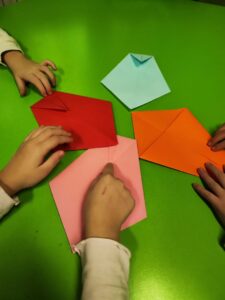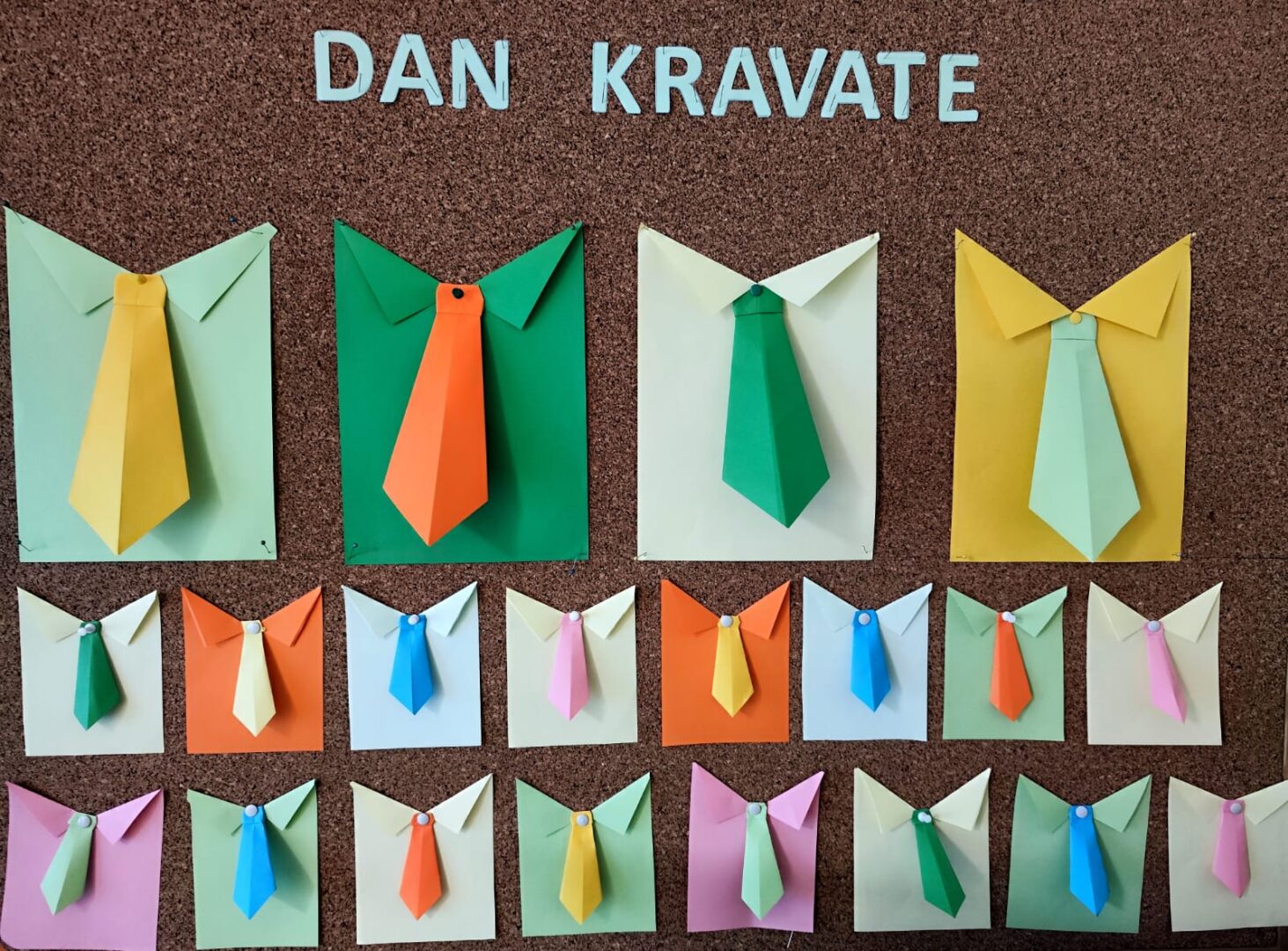 Na likovnoj radionici origami tehnikom izrađivali su kravate različitih veličina i boja i njima ukrasili pano.
