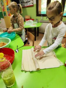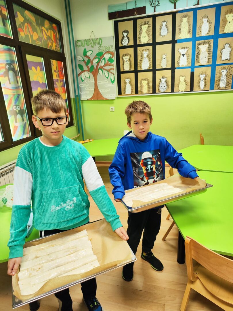Tim povodom organizirali smo radionicu izrade savijače od jabuka. Djeca su s oduševljenjem sudjelovala u ribanju jabuka, pripremi nadjeva i punjenju tijesta. Zahvaljujući kuharicama u školskoj kuhinji, ubrzo smo osjetili miris pečene savijače. Na kraju su svi s ponosom kušali svoje uratke i zaključili da je “domaće uvijek najbolje”.