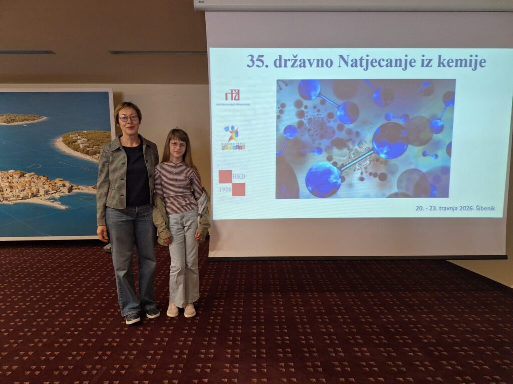 Na Državnom natjecanju iz kemije koje se održalo od 20. do 23. travnja u OŠ Meterize u Šibeniku, pod vodstvom mentorice Dijane Oršulić – Vukelić, sudjelovala je učenica 7.a razreda, Tara Kukovačec i postigla veliki uspjeh zauzevši 5. mjesto.