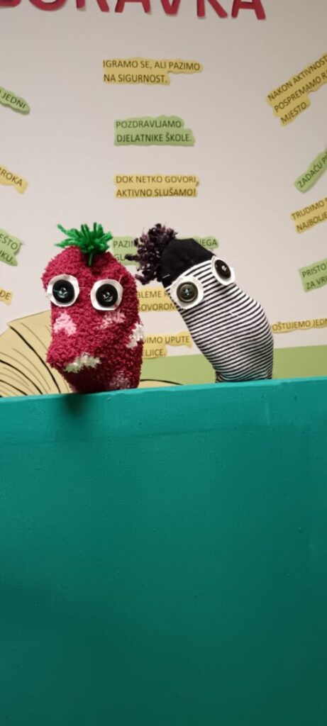Jedna od njih je i Čarapojedac, priča Ivane Guljašević Kuman koja govori o urednosti. To je priča o biću koje živi ispod kreveta i hrani se čarapama koje stoje odbačene, zgužvane i bez reda. Osim što su naučili da čarape i ostale odjevne predmete moraju svakodnevno mijenjati i pospremati, učenici su na kreativnoj radionici izrađivali vlastite lutke od čarapa. Svakom su „čarapoliku“ prišili dugmekao oči te dodali kosu od vune. Zatim su improvizacijom stvarali vlastite priče i glumili s lutkicama. Smijeha, veselja i kreativne energije nije nedostajalo.