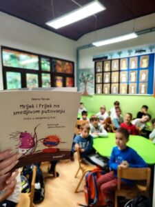 Sljedeća priča koju su slušali bila je priča Jelene Pervan Mrljek i Prljek na smrdljivom putovanju. Ona je dio serije slikovnica koja govori o higijeni. Djeca su kroz priču doznala što se sve događa ako ne peremo kosu redovito.