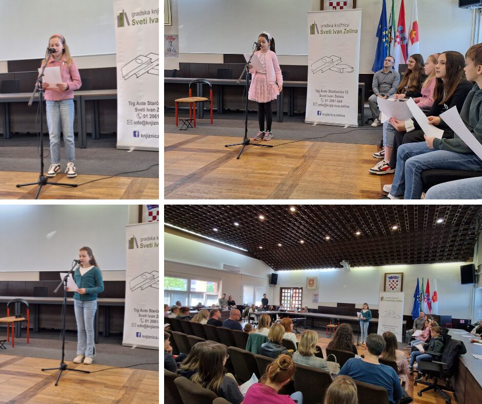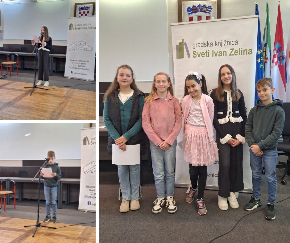 Učenici osnovnih i srednje škole čitali su pjesme dobro poznatih hrvatskih autora. Učenici nižih razreda naše škole Tara Bošnjak, Paula Kolar, Matej Pivarić, Karla Matić i Marta Šimara oduševili su jasnim i izražajnim čitanjem dječje poezije.