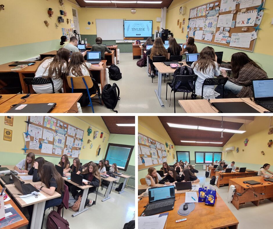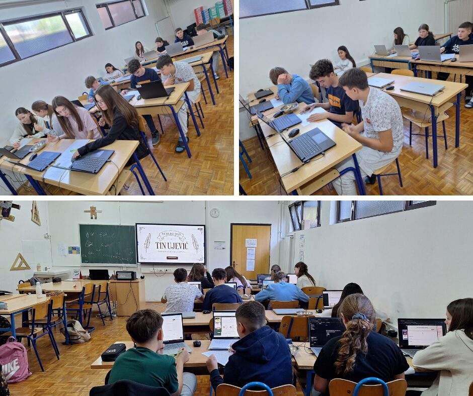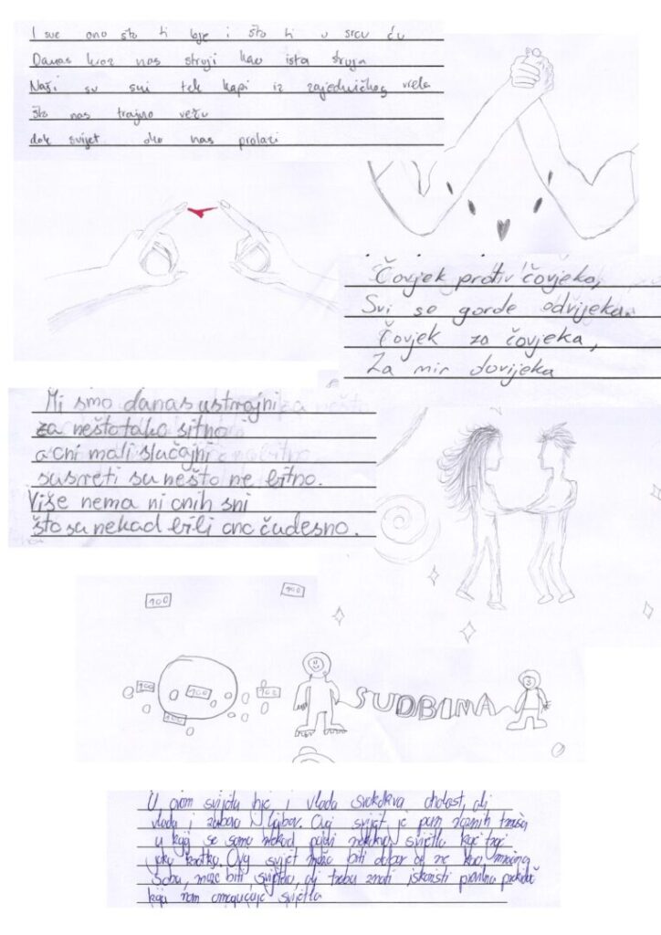 U četvrtak, 23. travnja, knjižničarka je s učenicima viših razreda naše škole održala kreativnu radionicu Pobratimstvo lica u svemiru. Radionica je započela slušanjem antologijske Ujevićeve pjesme, nastavila se zajedničkim čitanjem, traženjem i proučavanjem nepoznatih riječi te završila kreativnim izražavanjem stihovima ili crtežom.