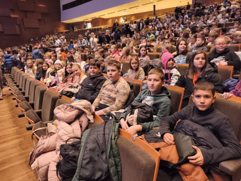 Danas su svi učenici nižih razreda naše škole posjetili Koncertnu dvoranu Vatroslav Lisinski i glazbenu priču S. Prokofjeva: Peća i vuk.