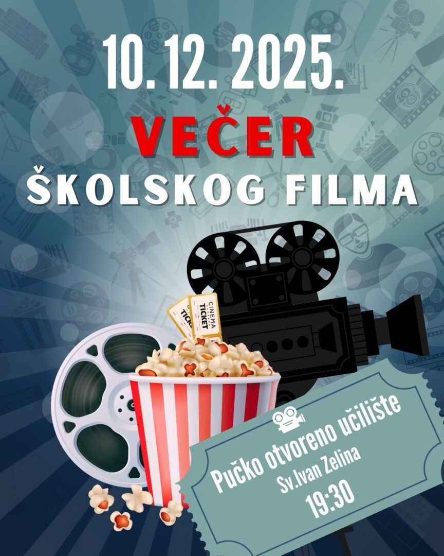 s radošću vas pozivamo na Večer školskog filma u organizaciji naše školske filmske skupine, koja će se održati 10. prosinca u 19:30 sati u Pučkom otvorenom učilištu u Sv. Ivanu Zelini.