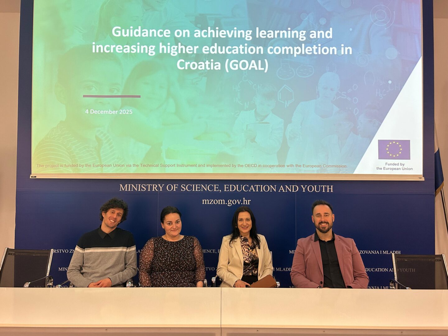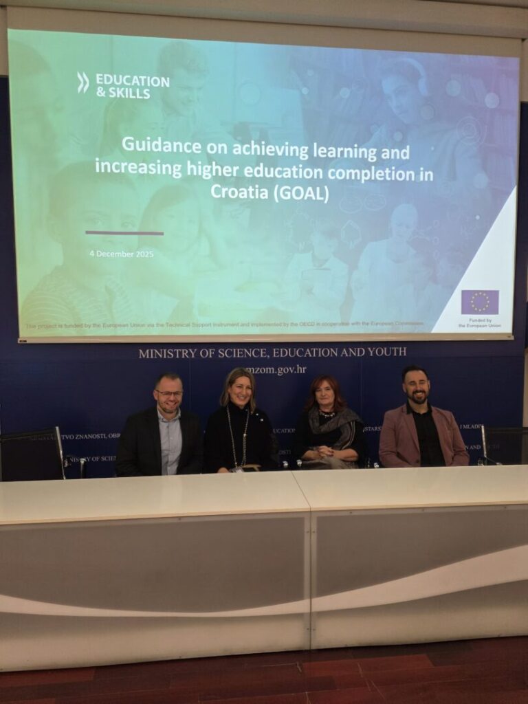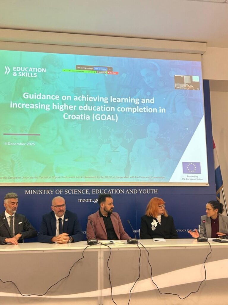 Organizacija za gospodarsku suradnju i razvoj (OECD), Radna skupina za ulaganja Europske komisije i MZOM provode projekt GOAL (Guidance on achieving learning and increasing higher education completion) kojim se želi unaprijediti sustav profesionalnog usmjeravanja i dati podrška učenicima u odabiru obrazovnih i karijernih putova. Danas je u Ministarstvu znanosti, obrazovanja i mladih održana prva konferencija ovog projekta na kojoj su sudjelovali ravnatelj Matej Škaro, logopedinja Sanja Lanović te učitelji engleskog jezika Ivana Martinjak i Marin Dolfić. Ravnatelj je također sudjelovao u jednom stručnom panelu, u kojem se zalagao za obimnije i ranije provođenje profesionalnog usmjeravanja u OŠ. Od četiri škole iz Hrvatske, u projektu sudjeluju tri iz naše županije: OŠ Stjepana Radića iz Božjakovine, OŠ Pokupsko te naša Škola. Cilj ovog projekta je izraditi vodič za poboljšano i sistematizirano profesionalno usmjeravanje učenika u osnovnoj školi, koji bi pomogao učenicima, učiteljima i stručnim suradnicima pri provođenju ove društveno i ekonomski važne teme.