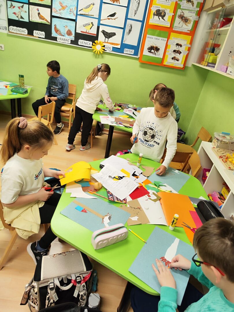 Stečeno znanje učenici su dodatno produbili na likovnim radionicama na kojima su kolaž papirom prikazali mjesto gniježđenja roda.