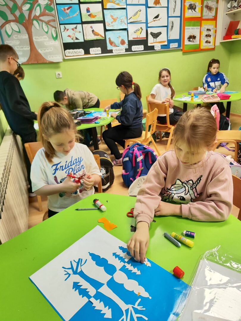 Učenici produženog boravka ponovili su obilježja zime i promjene koje se događaju u prirodi s posebnim naglaskom na drveće. Tehnikom kolaž papira (pozitiv-negativ) izradili su zimske motive.