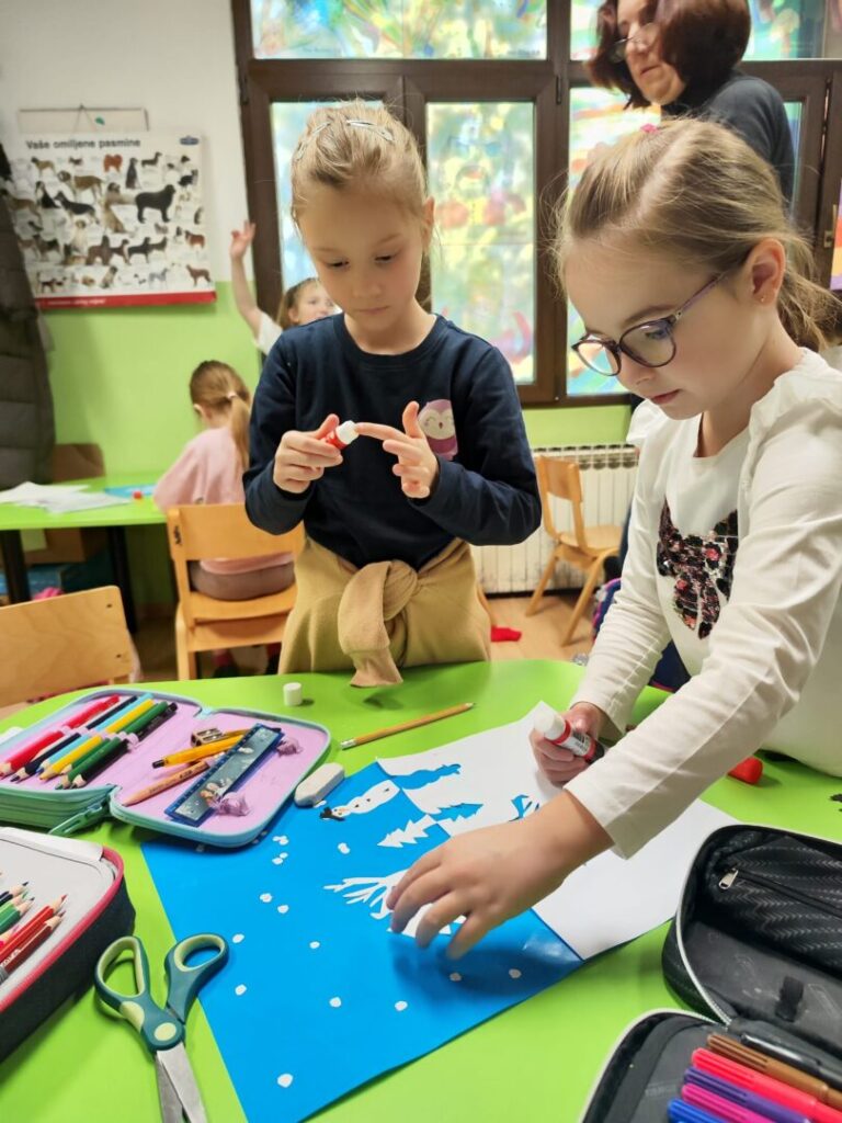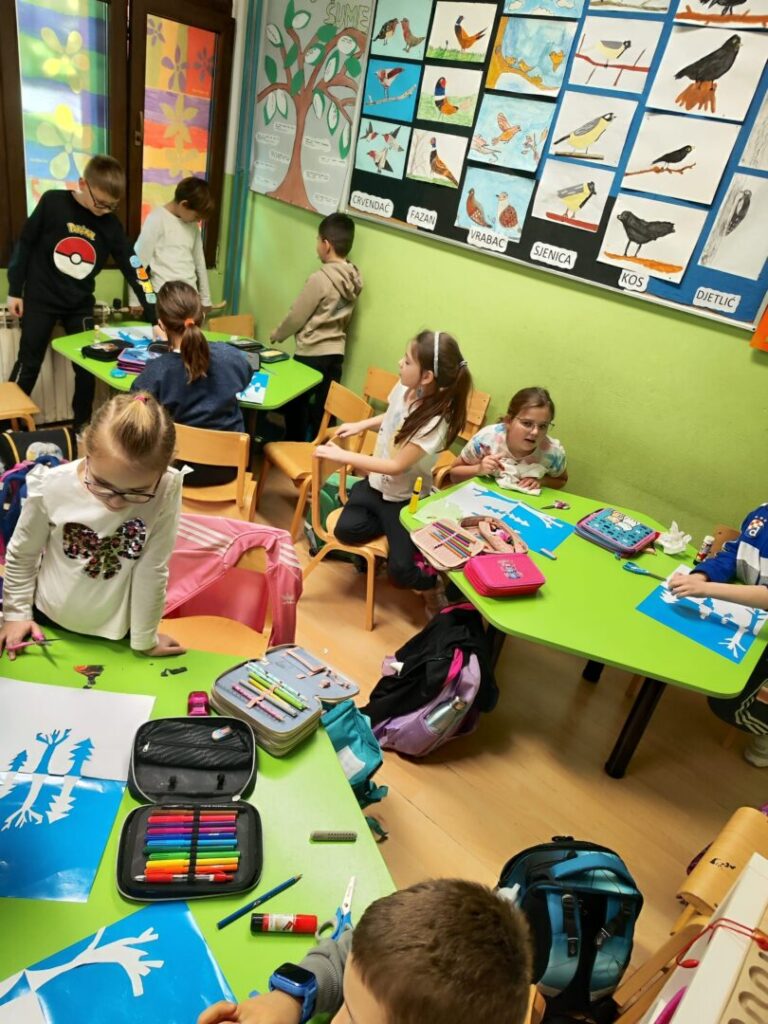 Učenici produženog boravka ponovili su obilježja zime i promjene koje se događaju u prirodi s posebnim naglaskom na drveće. Tehnikom kolaž papira (pozitiv-negativ) izradili su zimske motive.