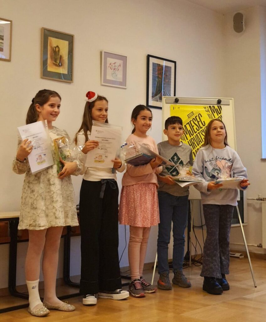 U srijedu, 29. listopada, u Knjižnici Augusta Cesarca u Zagrebu, održano je županijsko Natjecanje u čitanju naglas na kojemu je našu školu u mlađoj kategoriji predstavljala Tara Bošnjak te ostvarila izvanredan uspjeh osvojivši treće mjesto!